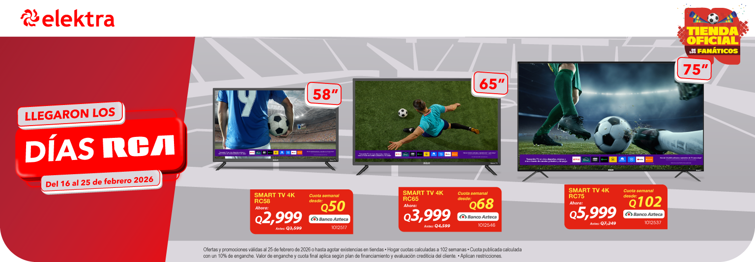 Televisor Smart RCA-Roku RC32 Q 1,409.00Q 1,199.0010x Q 120.00sin intereses+20 unidades disponiblesComprar ahora